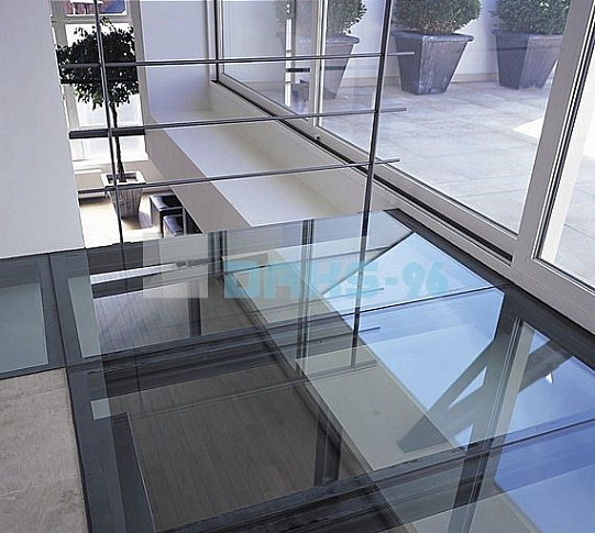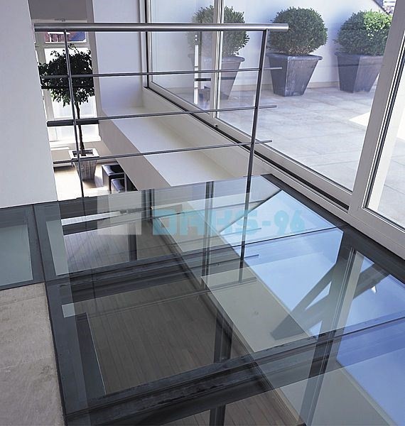 Стеклянное перекрытие из матового стекла на внутреннем балконе