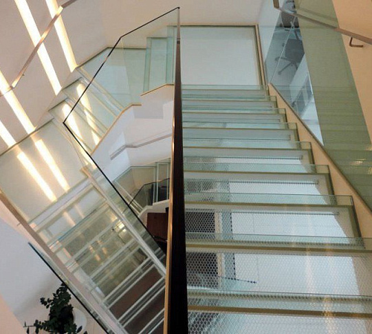 Стеклянное перекрытие из матового стекла на внутреннем балконе
