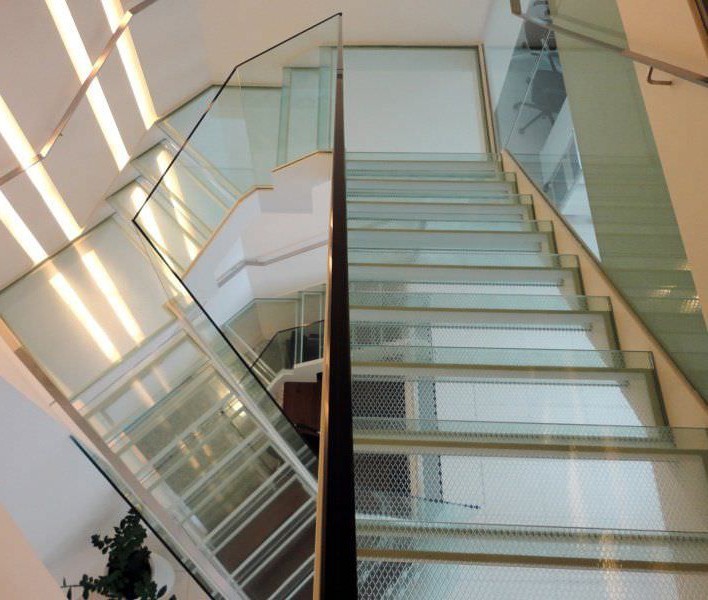 Стеклянное перекрытие из матового стекла на внутреннем балконе