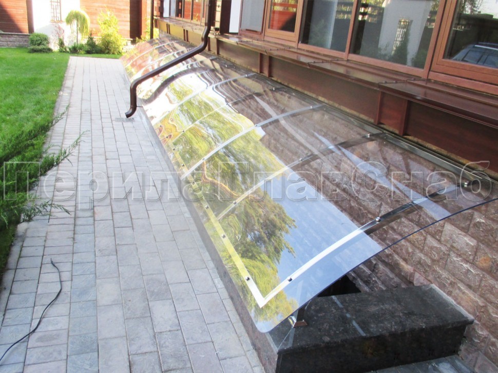 Козырек из поликарбоната на прямом каркасе